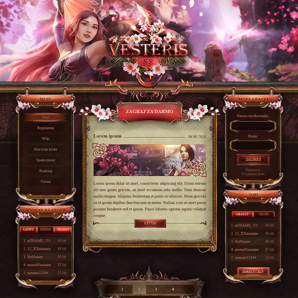 Website design for game metin2 made for vesteris.pl private server.